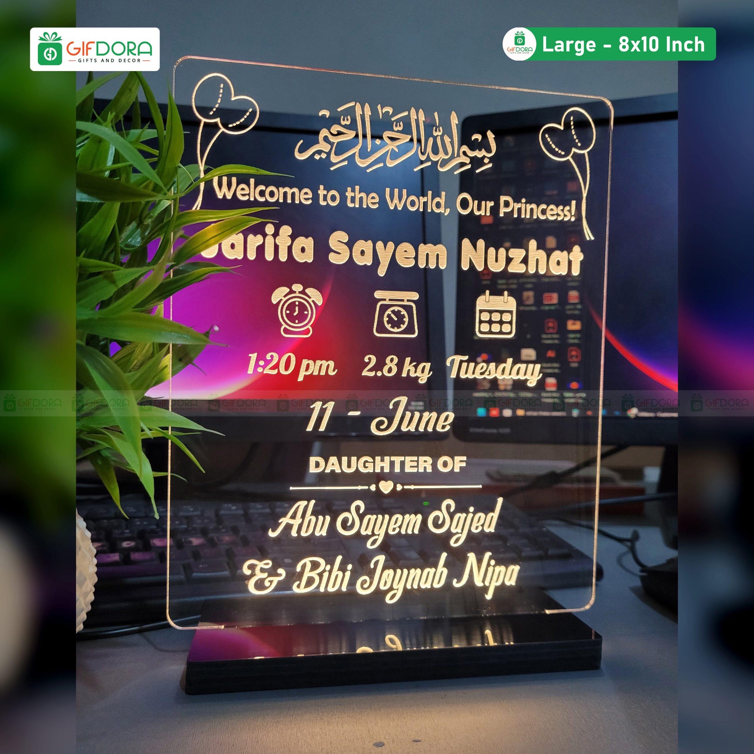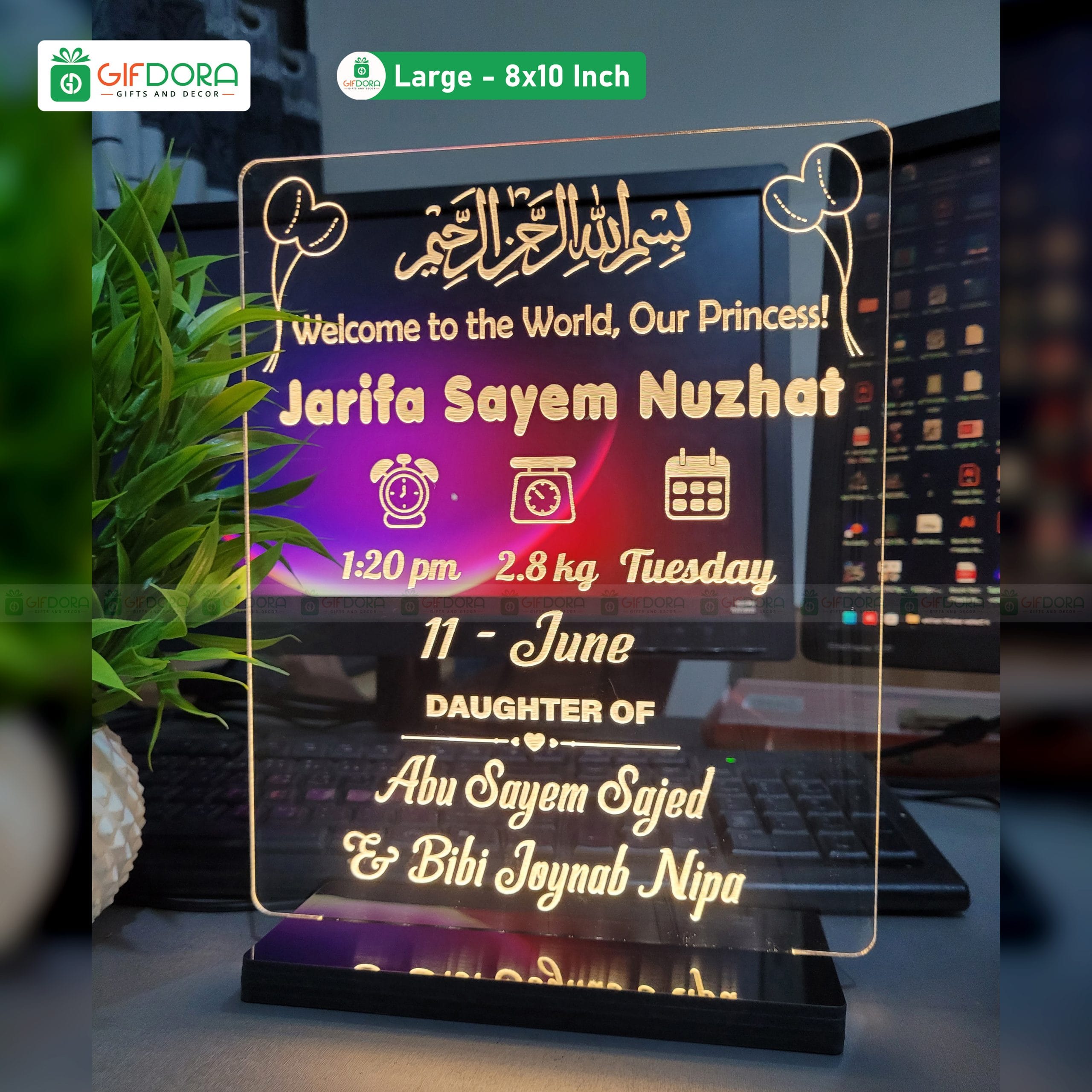 Available in 8 × 10 inches (Large) – this compact yet eye-catching lamp is equipped with LED lighting, providing a soft and elegant glow. The USB-powered system makes it incredibly versatile—simply plug it into a laptop, computer, phone charger, or any USB-powered device for instant illumination.